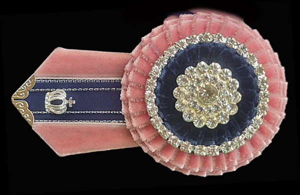 “Dusty Rose” shown made up in 13″ on 1″ Band.  Dusty Rose, Navy and Silver.