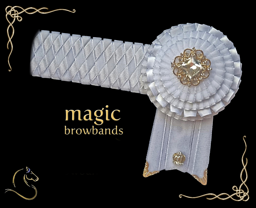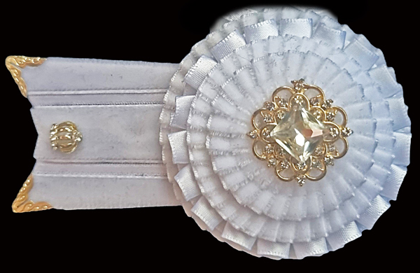 “Nikki” browband; all white and all class!  Shown made up in 16″ on 1.25″ band.